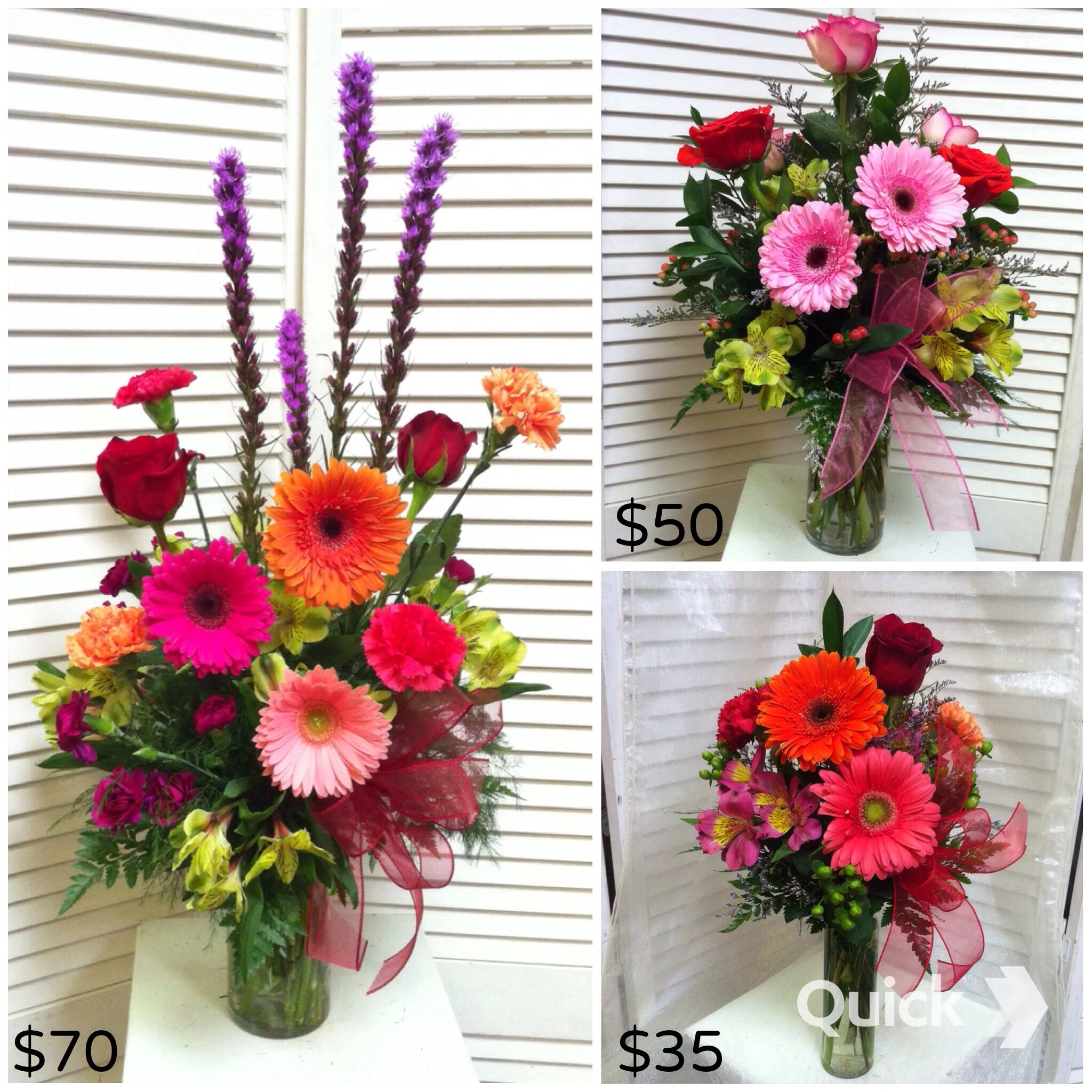 Small Bouquet $10 ($12 value); Medium Bouquet $14 ($18 value); Large Bouquet $24 ($30 value)